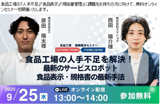 2025年9月25日にオンラインで開催されるFOODTOWNのセミナーにて、営業の原田が登壇します。