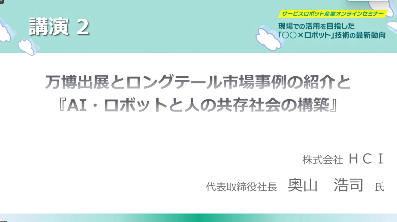 講演会・展示会 2025年11月20日(木) サービスロボット産業オンラインセミナー で、 代表の奥山が登壇しました。 サービスロボット産業オンラインセミナー (主催:地方独立行政法人東京都立産業技術研究センター)にて、 代表の奥山が登壇しました。