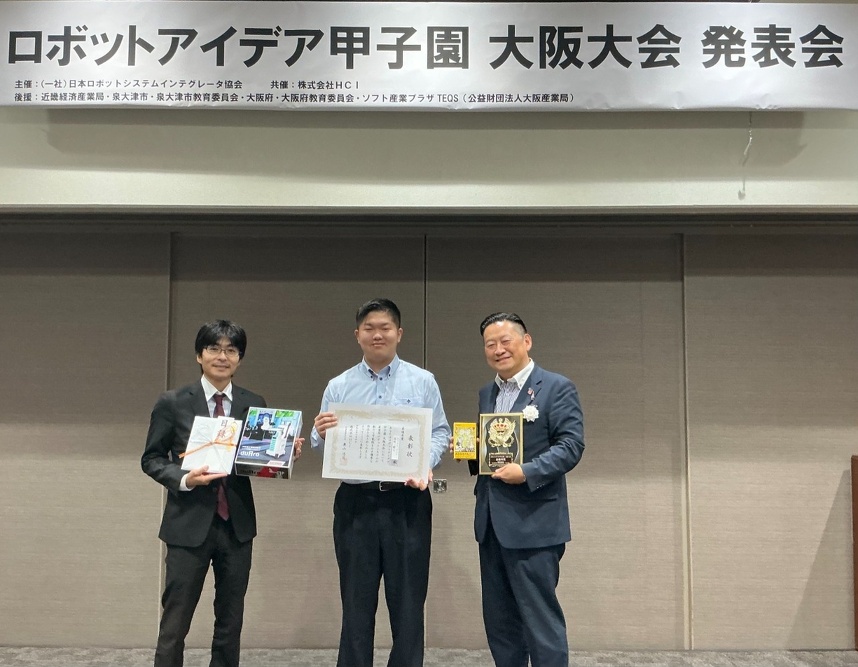 その他 2025年10月04日(土) ロボットアイデア甲子園2025 大阪大会 発表会 ロボットアイデア甲子園2025 大阪大会 発表会にて、 予選を勝ち抜いた9名がプレゼン発表を行いました。 厳正なる審査の結果、大阪府立城東工科高等学校の 高橋さんが大阪代表として 全国大会に出場することに決まりました。 活躍を応援ください!