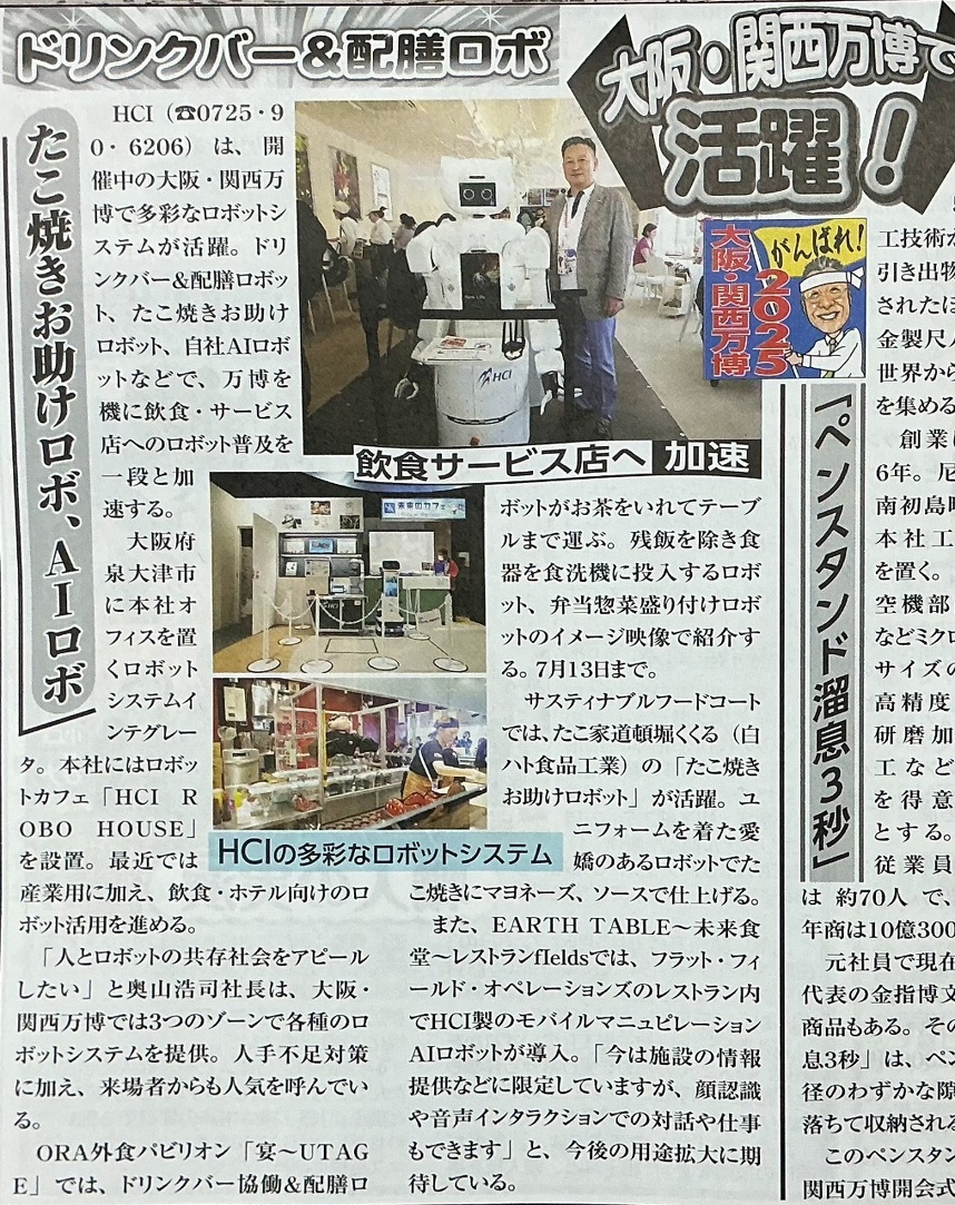 プレス・メディア 2025年07月01日(火) 日本一明るい経済新聞に、大阪・関西万博に出展しているロボットについての記事が掲載されました。 日本一明るい経済新聞(2025年7月号)に、大阪・関西万博に出展しているロボットについての記事が掲載されました。