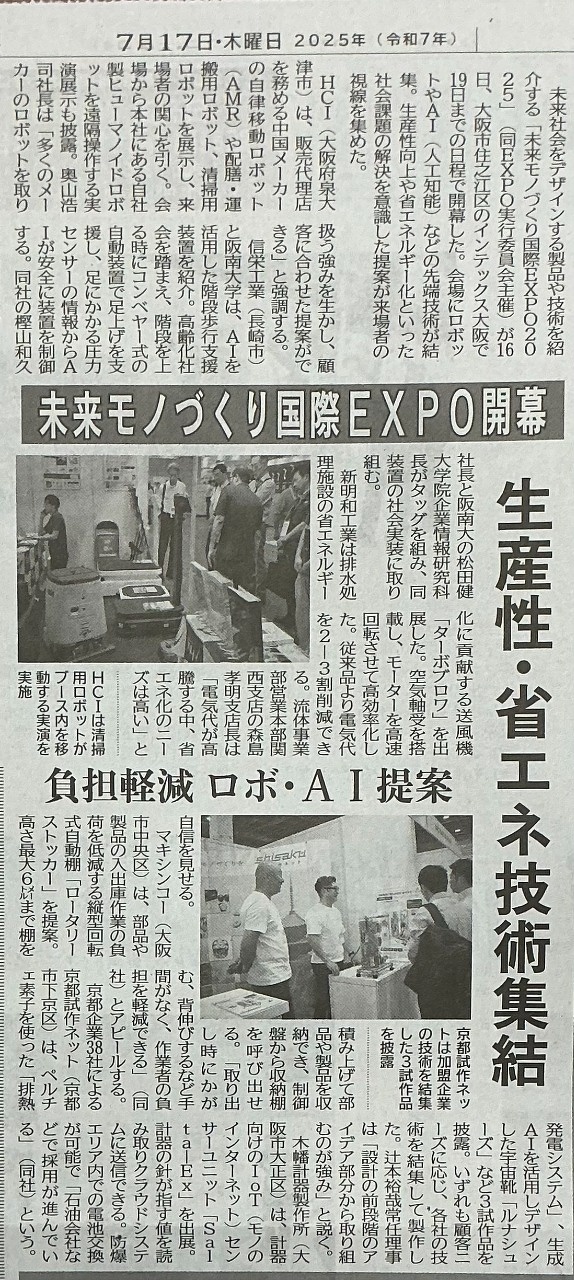 プレス・メディア 2025年07月17日(木) 日刊工業新聞に、未来モノづくり国際EXPOについての記事が掲載されました。 日刊工業新聞(2025年7月17日号)に、未来モノづくり国際EXPO2025についての記事が掲載されました。