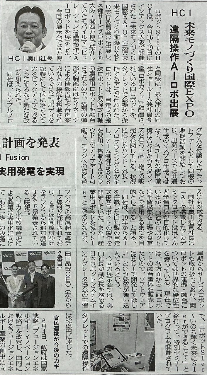 プレス・メディア 2025年07月21日(月) 電線新聞に、未来モノづくり国際EXPOの記事が掲載されました。 電線新聞(2025年7月21日・28日号)に、未来モノづくり国際EXPOの記事が掲載されました。